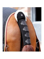 - Le néoprène rembourré offre une protection profilée exceptionnelle des os de la queue et des muscles épousant confortablement la forme de la queue. La construction haute est doublée d'une somptueuse Techno Wool protégeant le haut de la queue qui est la zone la plus sensible aux frottements. Techno Wool est un amortisseur naturel et la texture fibreuse répartit uniformément la pression et aide à évacuer l'humidité.