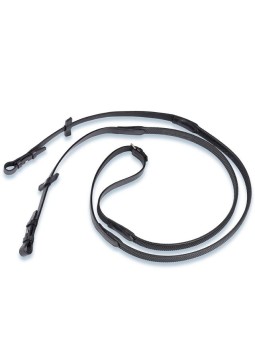 - Rênes en caoutchouc mi-larges de qualité à picots avec crochets. Le revêtement en caoutchouc offre une prise extrêmement douce et agréable, sans perdre en durabilité.