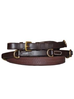 - Rênes caoutchouc de 16 mm. Elle sont munies de 3 petits D en laiton sur l'avant des rênes qui permettent la fixation d'enrênement.