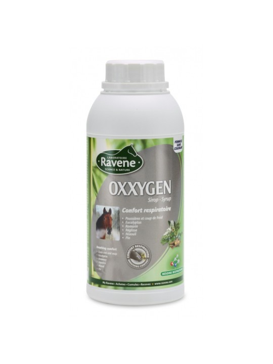 - Un environnement poussiéreux ou le travail par temps froid peuvent affecter les voies respiratoires de votre cheval, son confort et ses performances. Riche en essences de plantes (Ecalyptus, Pin…), OXXYGEN répond à des besoins respiratoires accrus par temps froid.