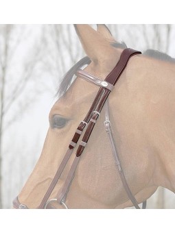 - Fine têtière anatomique en cuir anglais matelassée d’une fine peausserie doublée en néoprène 2mm.